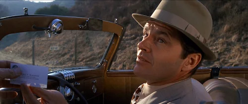 Similarly, we see Detective J.J. Gittes resorted to adultery scandals. That's not what being a noir detective is all about! However, he is confined to this small space for narrative's sake. He even acknowledges the Venetian blinds he just had installed being mishandled (these blinds are a common set piece in films noir). He knows his fate. He just has to keep moving ahead. He dabbled in the unknown before in Chinatown. It did not go well. He has to stick to these low levels of formulaic comfort to not risk everything again. This is what it means to break ground. Succeed, and you're iconic. Fail, and no one will ever remember you. There are slight chances that you will be appreciated later on, but who wants to take those slim odds? Apparently, everyone that worked on Chinatown did.