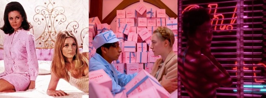 We end off on pink: the combination of red and white. So, passion and purity can result in either fleeting love, retro nostalgia, sugary aesthetics, or eroticism. Valley of the Dolls is a muted pink throughout, resembling the lingering dreams of being loved, even through the anguishes of the lead characters. The Grand Budapest Hotel is a bit of a more innocent approach, being invested in unrealistic, picture book imagery, and the film’s obsessions with baked goods (centred around a youthful romantic subplot). Mishima: A Life in Four Chapters uses a hot neon pink in a particular scene meant to create feelings of passion during sexual exploration.