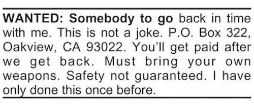 Safety Not Guaranteed: Newspaper Advertisement