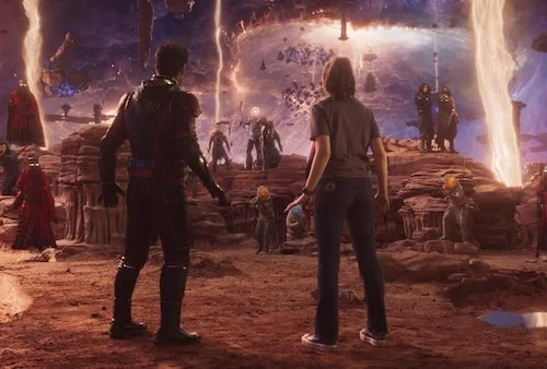 While the film itself is quite a lot of fun, it almost got a higher score but there were a few key factors as to why Ant-Man 3 didn’t go far enough with some character work. There’s an impactful moment where Scott has physical action visually paired with an internal struggle he’s having, I’ll call it the Multiplicity scene for now, and it’s a good step in the right direction- but there were richer character moments to be had between Scott and Kang. Maybe the Ant-Man movies aren’t where the heavier moments of the MCU usually lie, but there’s enough in the film that’s trying to instill momentous grandeur whenever Kang is on-screen that I began to expect that tone throughout other parts of the film. There’s so much going on in the film that does feel like exciting new territory for both the Ant-Man characters and the MCU at large, but it speaks volumes that for all of the Journey to The Center of The Earth and Flash Gordon vibes, some of the best parts of the film are when Kang and Scott are in a room together talking.