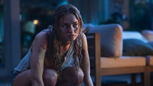 Kate’s brother, Nick (Benjamin Cheng) picks the trio up from the airport and is reunited with Lucy after so long. Being childhood friends Nick considers Lucy to be like a sister to him while being coy with his attraction to Hannah. The feeling is mutual as Hannah also reciprocates the affections, while vocalizing all that Lucy tries to gesture with her body language. As the film progresses, the subtleness and effectiveness of the characterization gives us enough sympathy to care for the characters while also knowing how expendable they might be. Arriving at Lucy’s luxurious cliffside home, she greets her widowed deaf father Adam (Troy Kotsur) a successful author of novels with titles like ‘A Silent Cry’, ‘A Silent Scream’ and his latest ‘A Silent Death’. Trying to reignite a stagnant conversation with her younger despondent sister Erin (Gia Hunter). There’s an interesting skill that the family-family friends (Kate and Nick) all share and that’s the ability to sign. Once Ben begins making his way through the house and dismembering each member of the group it seems like this is their only way of communicating apart from speaking at very low volumes. There’s also mention of sign language when Hannah asks Nick what happened to Lucy’s mother, who before passing away from cancer was a linguistic scientist hoping to discover a way for humans to communicate with primates. Nevertheless, in theory this is interesting and gives the film some unique elements but it would’ve been more interesting if Roberts and co-writer Ernest Riera wove it into the script better.